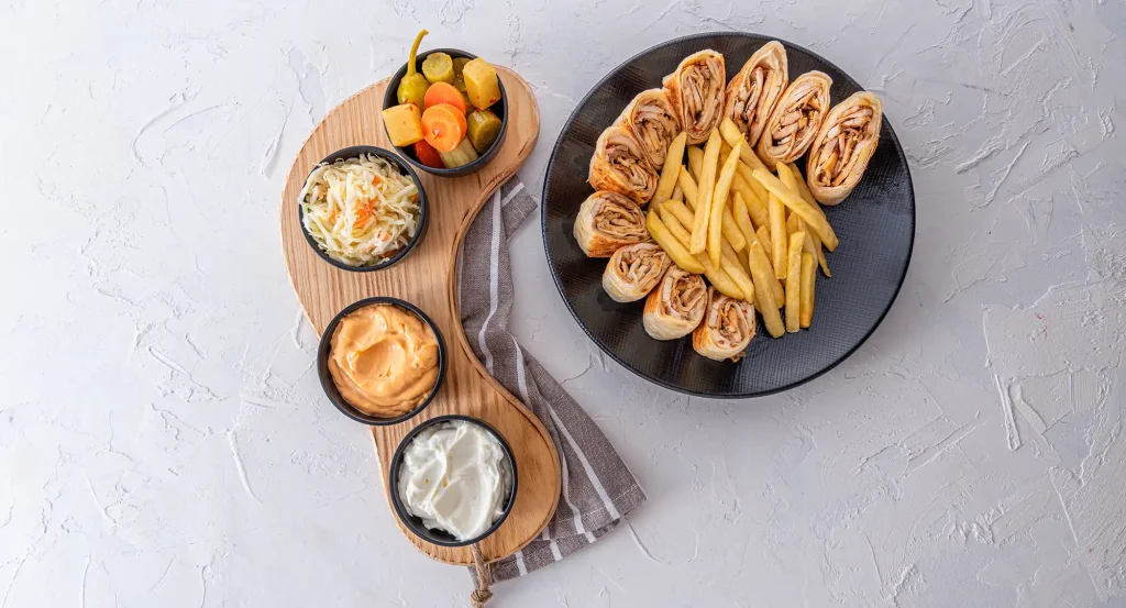 نقدّم مجموعة متنوعة من الصلصات، منها الثوم الكلاسيكي، الصوص الحار، وصوص اللبن مع الطحينة. جميع الصلصات تُحضّر في مطبخنا يوميًا بمكونات طبيعية.